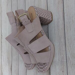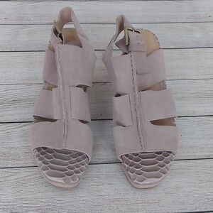 Donald Pliner Geneva Beige Suede Heeled Sandals With Snake Skin Block Heels Size 9