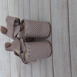 Donald Pliner Geneva Beige Suede Heeled Sandals With Snake Skin Heels Size 9