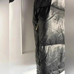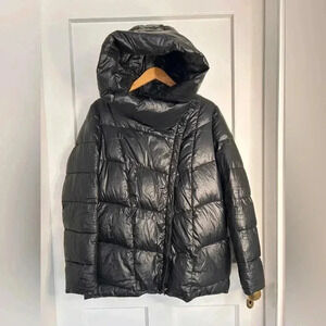 Donna Karan Black Down Puffer with Large Collar/Hood Neckline M/L