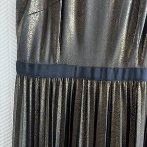 Donna Morgan Stretch Foil Pleated Halter Dress Liquid Gold Metallic Size 0 XS
