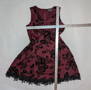 Donna Ricco Burgundy Red Black Velvet Burnout Lace Detail Formal Dress 4 Woman