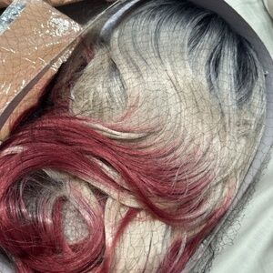 - ombré silver/blond ish and red/pink