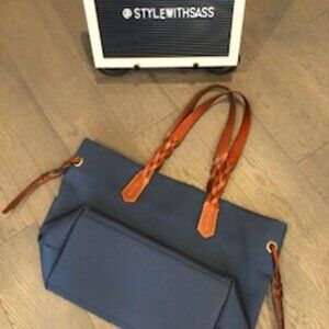 Dooney & Bourke Casual Multi Purpose Nylon + Leather Tote Bag Blue Sz OS
