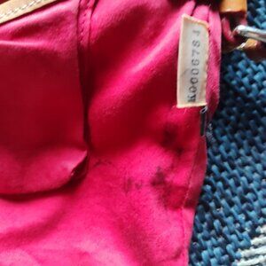 Very pretty authentic bag. Very convenient size. One outside pocket. Two iside pockets, one zippered. Adjustibel strap. Very nice charm, leather and brass. Very pretty quality bag. The leather is to dies for. Ready to use. the bag is 8 v 7.75". The shoulder strap is adjusted now to 24" drop (as pictured) but has more length if you wanted longer. Now it's on the shortest length without making new holes. Awsome bag.