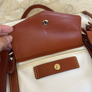 Dooney & Bourke Florentine Smith bag, made of white nylon with brown leather trim and features: