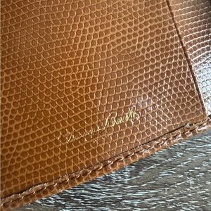 Elegant tan wallet with textured design. Features metal branding detail. Room for lots of cards, cash, and change pocket on exterior. Spotless interior and exterior.