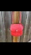 Trendy small red crossbody with contrast saddle stitching. Features adjustable strap and secure flap closure. Includes a key fob.