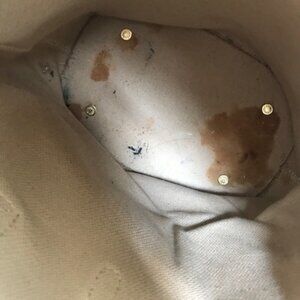 Bag is in good vintage condition. Some wear to canvas and leather. Handles good, some edge wear. NOTE: stains inside (see photo).