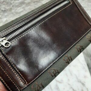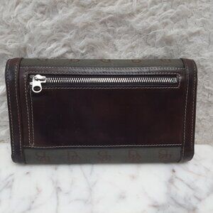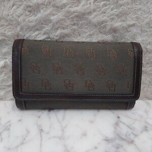 Dooney Bourke Wallet Brown Canvas Leather Trifold Checkbook Organizer Clutch