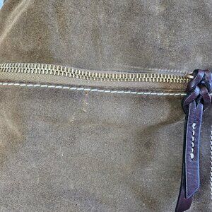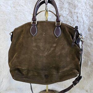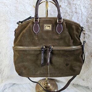 Dooney and Bourke Dark Olive Green Suede Leather Dillen Double Pocket Satchel