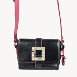 Dooney and Bourke Little Mini Black Leather Shoulder Bag with Heart Buckle