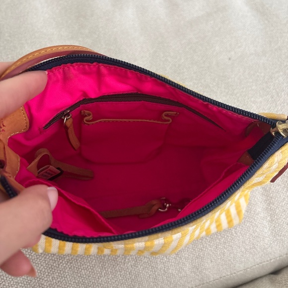 Dooney and Bourke Striped Shoulder Bag, Purse in White and Yellow