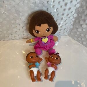 Dora the Explorer Talking Plush 2010 10” doll with Big Sister Dora’s baby brother & sister dolls