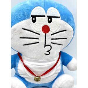 This rare Doraemon Blue Gadget Cat plush is a must-have for any anime and manga fan. It stands 11 inches tall by 10” wide and features a cute kissy face and a metal bell. There are a few light marks. Please view photos for details.