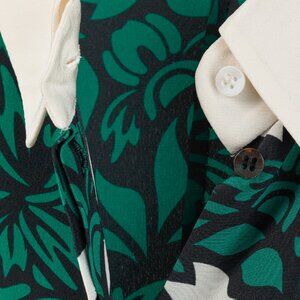 Dorothee Schumacher Green Botanical Print Silk Button Up Collar & Cuff Blouse