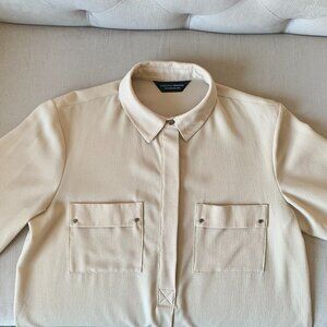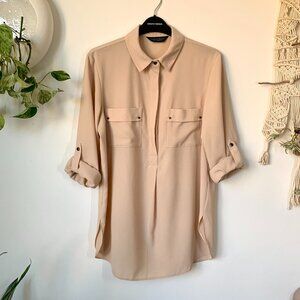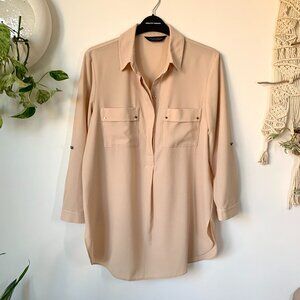 Dorothry Perkins Beige Collar ¾ Length Sleeve Blouse Corpcore Siren Minimalist
