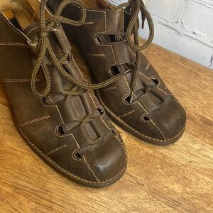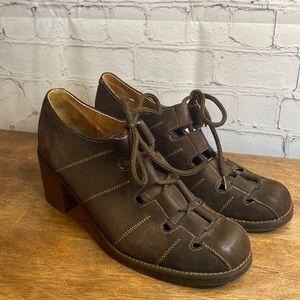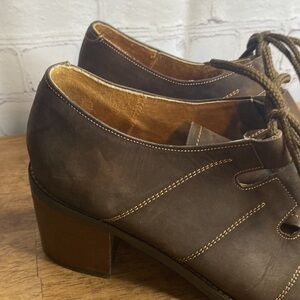 Dorothy Gaynor Brown Leather Lace Up Blocked Heel Ankle Bootie EU 38 or US 7.5
