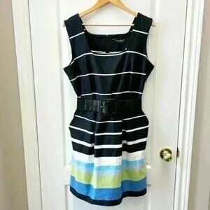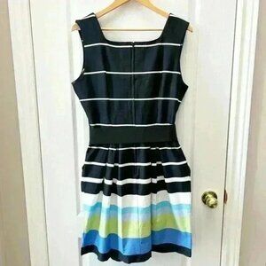 Dorothy Perkins Sheath Dress Sleeveless Black White Green Blue Stripes Size 14