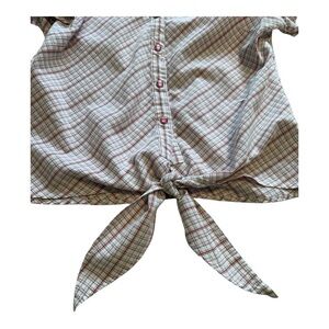 Dorothy Perkins Short Sleeve Tie Front Snap Button Plaid Blouse - Size Medium