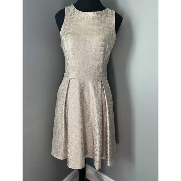 Dorothy Perkins women Sz 8 White Gold Shimmer Dress Pockets A Line Sleeveless