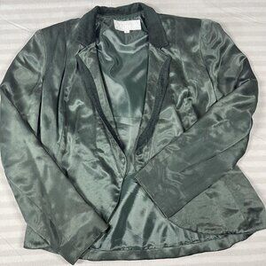 Dorothy Schoelen Platinum Blazer Womens Small Green Rayon Italy USA Made Jacket Vintage