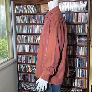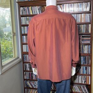 In a beautiful rust brown tone this men’s shirt features an embroidered raven art piece on the right chest and a flat pocket on the left chest.