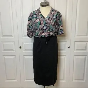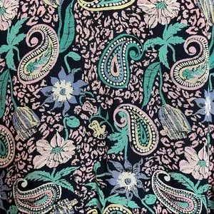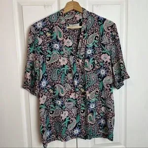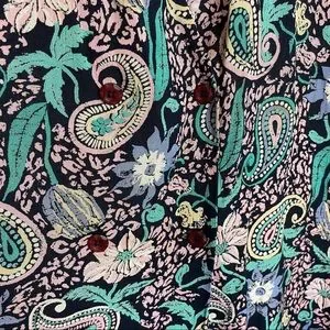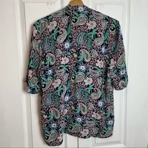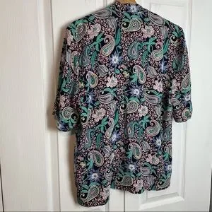 The paisley/floral combo of this top is too adorable. Tags have been removed, but is likely rayon and would be best fit size large. Check msmts for preferred fit. EUC.