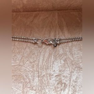 Trendy layering style necklace! Features one heart + a lock & key hung on two silver beaded chains, infused together with a classic lobster-claw clasp.