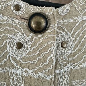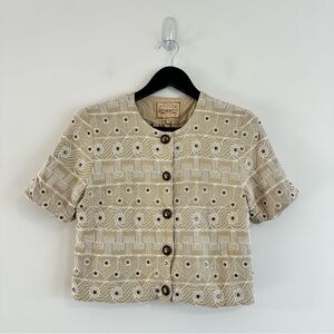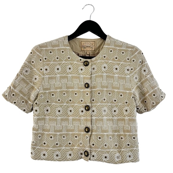 Double D Ranch Beige Textured Embroidered Buttoned Top Small