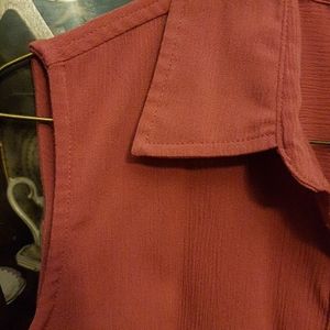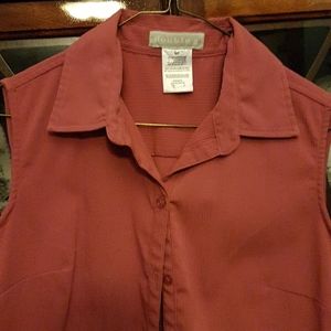 Mauve crinkle sleeveless button down. Minor imperfections in fabric.