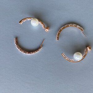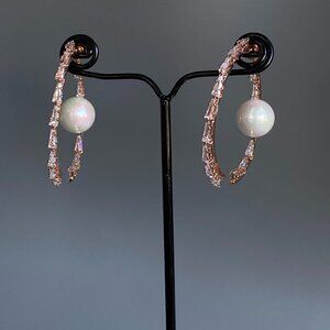 Double Sided Rose Gold Cubic Zirconia Hoop Earrings NWT