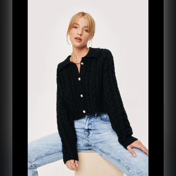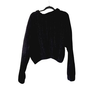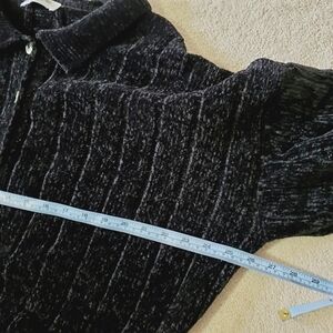 Double Zero Black Velvet Chenille Collared Button Up Boxy Cardigan L