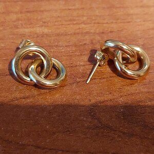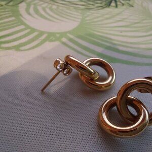 2 loops earrings. Hypo Allergenic. No itchy ears, no allergic reactions, no greenish, blackish spots. Made from surgical grade 316L stainless steel. Plating gold PVD. Corrosion resistant. Condition is as new. Earring backs may be silicone.