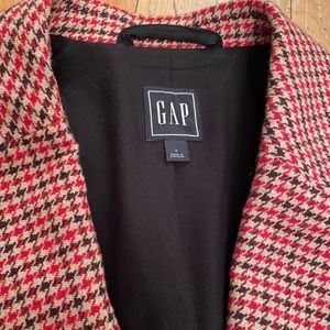 Well made blazer, a mix of red, brown, and cream color. I only wore it twice.
