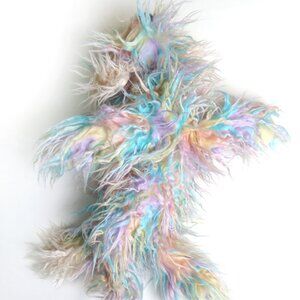With his colorful plush coat of shaggy fur, Jaxton the Rainbow Dog is an exciting and fun companion like no other! Patches of purple, yellow, teal, and apricot make up Jaxton’s whimsical appearance and set him apart from all the other dogs! Look into his rose colored eyes to discover an exciting fantasy sparkle. Jaxton’s long floppy body is stuffed with the softest polyester fill making him an appealing friend to snuggle up with and cuddle.
