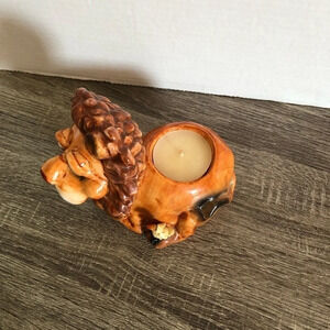 Russ Berrie by Douglas ceramic candle holder with candle. Grumpy looking lion with a tiny seagull friend.