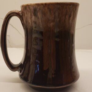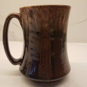Solid Dow Trophy Beer Stein Mug. Brown with Embossed print. Rim is brown/white goes down to handle.