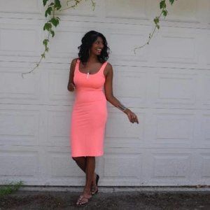 Downtown Betty Ultra Tank Dress. ..a sexy curvy below the knee tank dress, with a scoop back to show all of your svelteness off. Size small but a medium will get into this too. Stretchy fabric with cotton. Breathable Made in Canada quality. Yoga lifestyle clothing.