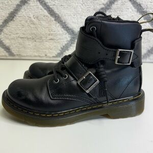 Dr. Martens 1460 Joska Romario Boys US 1 Black Leather Biker Buckle Boots Rare