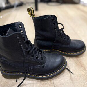 Details: The 1460 8-eye boot is the Original Dr. Martens boot, born 1st April 1960 — and named after the date. Known for its signature yellow welt stitching, grooved air-cushioned sole, and signed heel loop, it started at the feet of postal workers before it found its way to headline stages worldwide. We've made this super-soft version of the classic 8-eye boot from Virginia leather with a narrower fit for comfort from the first wear.