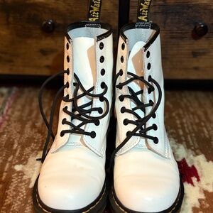 Authentic Dr. Martens 1460 white leather boots. Classic 8-eye lace-up design. Size US 8 / EU 39 / UK 6. Pre-owned, gently worn — some minor scuffs/marks (shown in photos), but overall good condition with plenty of life left.
