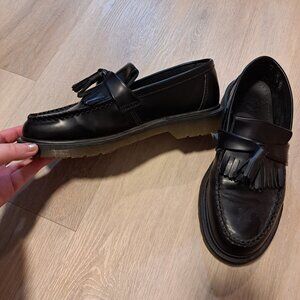Stylish black loafers with tassel detail. Classic design by Dr. Martens. Perfect for casual wear.