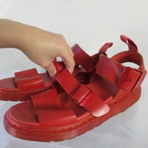 Keywords: Dr Martens sandals, Gryphon sandals, red leather sandals, buckle sandals, gladiator sandals, platform sandals, women's sandals, size 9 sandals, Dr. Martens Gryphon, leather sandals women, red sandals, adjustable buckle, chunky sandals