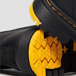 Classic black boots with signature yellow stitching. Features lace-up front and side zipper.