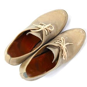 Look to be worn once or twice. Smooth vintage grey/beige washed upper, rubber wedge.
