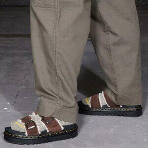 Dr. Martens Suede Leather Sandals Faux Fur Lined DOC MYLES Buckles Slides Brown