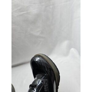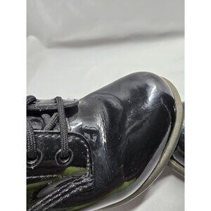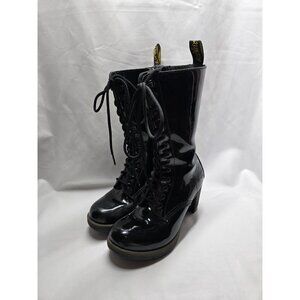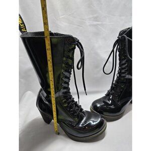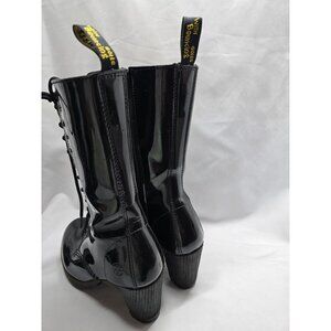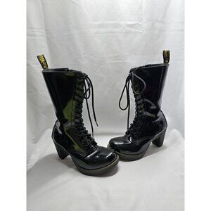 The Dr. Martens Dee boots were a limited edition model from the brand's Diva collection, featuring a glamorous, edgy style with black patent leather, 14 eyelets for lacing, a comfortable zipper closure, and a distinctive high block heel. Designed to be both comfortable for daily wear and elegant for formal events, these discontinued boots are a sought-after addition to an edgy wardrobe and are valued for their quality craftsmanship and unique aesthetic.