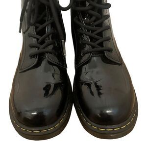 In very good condition. Dr. Martens Women's 1460 Black Patent Leather Boots. Even more shades from our archive. The high-shine Patent Lamper 1460 boot stays true to its Original construction: yellow welt stitching, a scripted AirWair heel loop and a tough air-cushioned sole