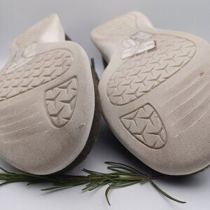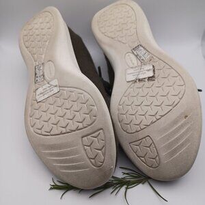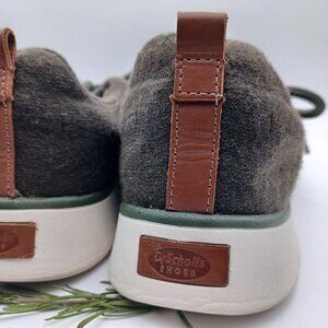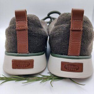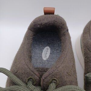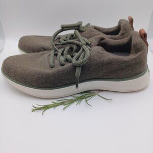 Super comfortable knitted runners in dark olive green. White soles with brown faux-leather accents on heels. In great condition, barely worn. Perfect for autumn days.