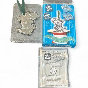 Dr. Seuss Cat in the Hat “Fish in a Dish” Silver Ornament 2003 Collectible Vtg